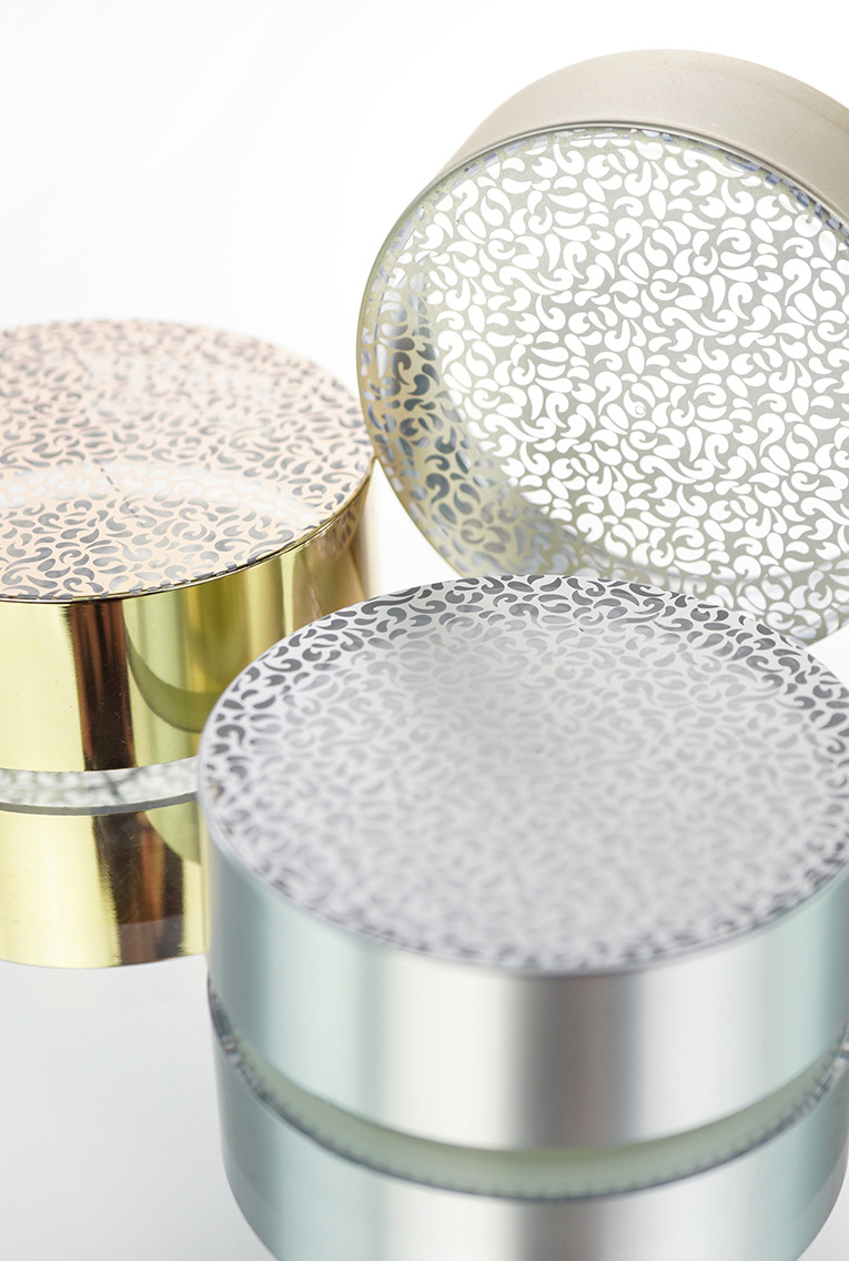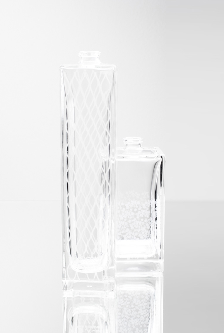 Premium decoration effects can be realised by engraving fine details on surfaces or 3D decoration inside the mass of the glass.